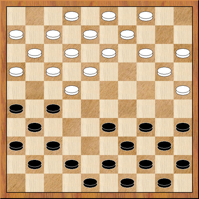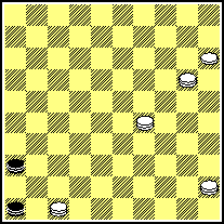 19-2, 20-24-29 en 25-30x49. Schijf 15 gaat daarna simpel naar dam omdat wit zich