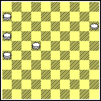 dammen op de velden 1, 6, 50 voldoende is voor de remise. De schijven 35 en 45