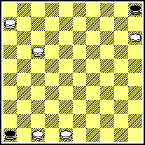 b. Zwart staat met de tweede dam in kwadrant 3, 4 of 5. Wit moet de dammen 16 en 21 naar de velden 47 en 48 brengen. Bijvoorbeeld twee zwarte dammen op 46/48. Dan volgt er 21-27, 16-21, 21-26, 27-31 etc. terwijl zwart heen en weer blijft gaan met de dam op de hoofdlijn.
