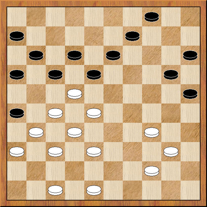 Peter Poot kiest na het ultimatum 17.36-31 voor grootschalig omsingelen. Lange tijd lijkt hij het gelijk aan zijn zijde te hebben, totdat in het late middenspel opeens al zijn stukken verkeerd blijken te staan. In een uiterste krachtsinspanning weet hij nog een punt te redden. De witte stelling is zorgelijk in de diagramstand. Hij heeft nog maar vijf schijven buiten de opsluiting. Zwart hoopt de opmars naar 18 af te dwingen om nog een schijf achterwaarts te kunnen afruilen en zijn korte vleugel helemaal schoon te maken.