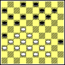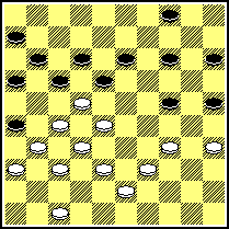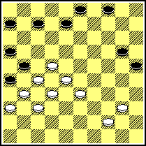Puur tempospel blijkt de sleutelrol te spelen in dit soort stellingen. Hier volgde 24...19-24? 25.23-19! en zwart had zoveel tempi in de maag gesplitst gekregen, dat Stokkel rustig de tempi kon uitspelen in afwachting van het moment, dat zwart zou moeten gaan afhaken en zijn steunschijven los moet spelen. Na het voor de hand liggende (24...19-24) 25,38-33? heeft wit nog vier zetten alvorens hij expansie moet gaan zoeken. Een goed alternatief voor zwart lijkt de hergroepering 24...8-12! 25.38-33 12-18 26.23x12 11-17 27.22x11 6x8 met goede kansen.