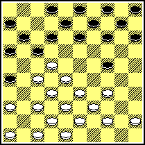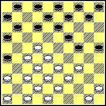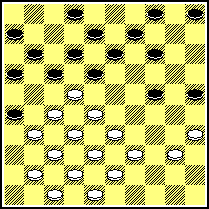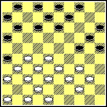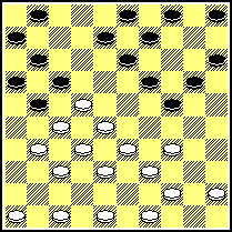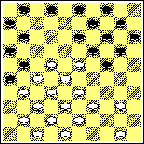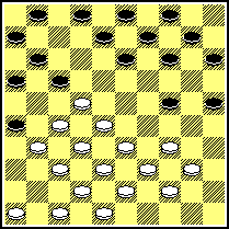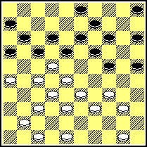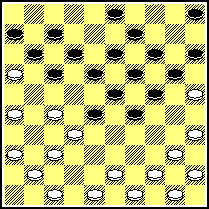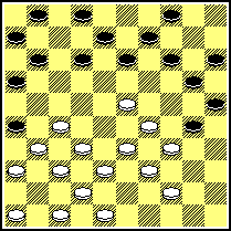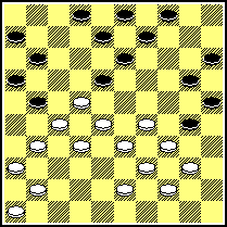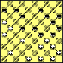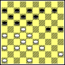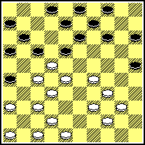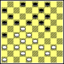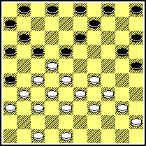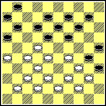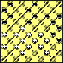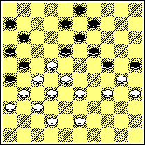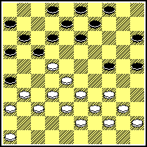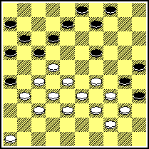 De witte stelling ziet er prachtig uit in de partij Alias van Mechelen. Maar desondanks viel het resultaat wat tegen na de uitval 22-18. Het is mij niet helemaal duidelijk hoe zwart onaangename afwikkelingen kan vermijden na de beginzet 25.29-23. Zowel na 4.10, 9-14, 9-13 als 20-24 ontdoet wit zich van zijn voorpost op veld 22. In de partij gaat wit nu ten onder aan de wendingen ingeleid met 16-21 cq. 11-17x7-11.